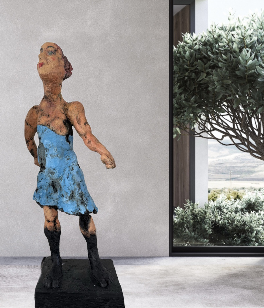 Bronze, bemalt, circa 47 cm x 17 cm x 17 cm, Unikatär bemalt. 12-14 Kg Gewicht.